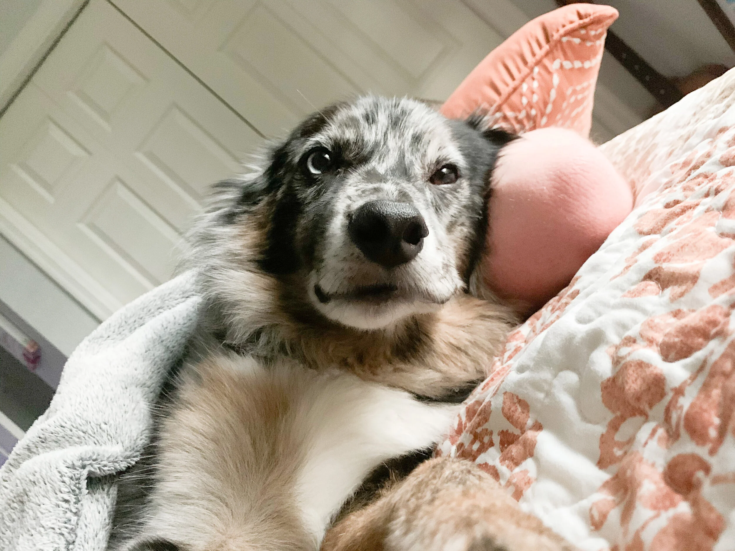 Finn is our 7-year-old Australian Shepherd. He brings so much joy and light into our lives and when we created our candles we wanted a fun name that reflected the uniqueness of our candles. We were stuck between Slow Burn and WhimWick (whim as in whimsical), and then while we were discussing the names Finn walked in and I just blurted out FinnWick. and that was that.